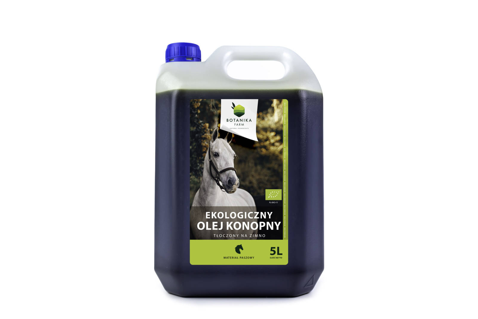 - Tłoczony na zimno olej z nasion konopi siewnych zalecany szczególnie dla koni nadpobudliwych.