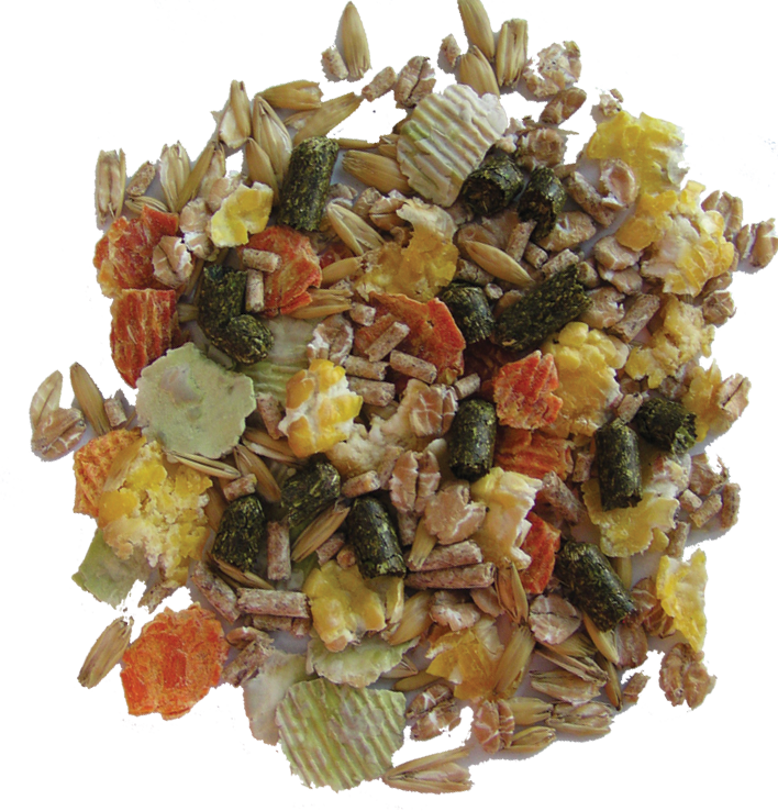 Surowce zawarte w paszy, takie jak ziarna zbóż, soja, marchew i jabłka, poddane zostały parowej obróbce termicznej.