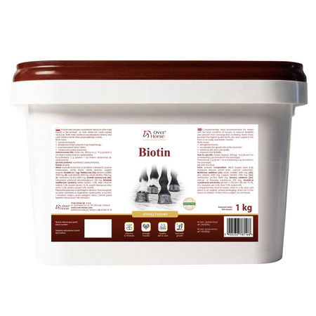 - Bardzo skuteczny suplement wzmacniający kopyta. Wyjątkowe połączenie biotyny, cynku, miedzi i metioniny poprawia jakość rogu kopytowego oraz przyspiesza tempo przyrostu.
