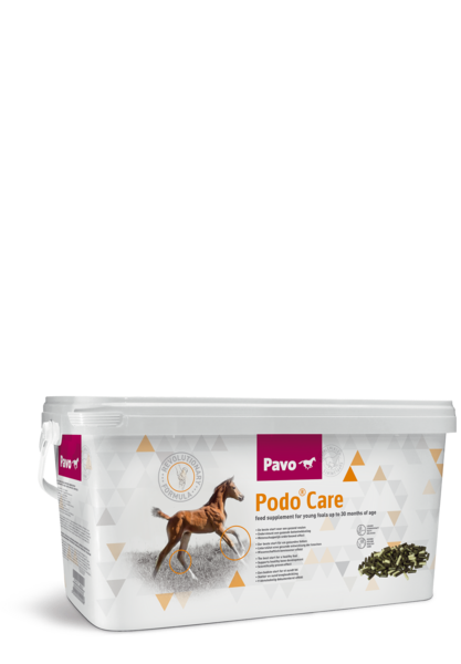 Pavo od zawsze prowadzi intensywne badania mające na celu znalezienie idealnej paszy dla zwierząt hodowlanych i opracował koncepcję Pavo Podo®. Koncepcja Podo® to unikalny kompleks minerałów, który zmniejsza prawdopodobieństwo wystąpienia OC(D) u młodych koni o 50%. Pavo Podo®Care został wzbogacony o tę wyjątkową i sprawdzoną koncepcję Podo®, dzięki czemu optymalnie wspiera zdrowy rozwój kości.