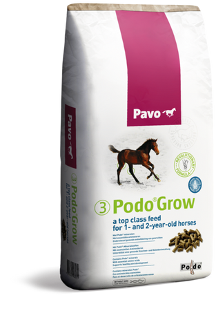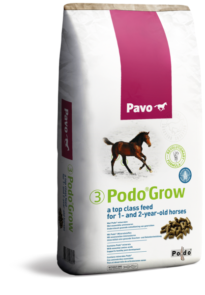 - Jeśli Twój 3-letni koń nadal rośnie lub jest zbyt chudy, możesz kontynuować karmienie Pavo Podo®Grow.