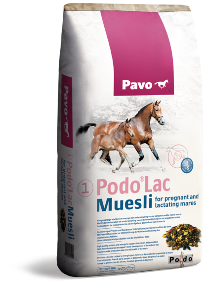 Pavo Podo Lac Muesli jest wzbogacony miedzią i cynkiem, ponieważ mleko klaczy zwykle zawiera zbyt mało tych pierwiastków śladowych, aby zapewnić źrebięciu wystarczającą ich ilość. Są to składniki odżywcze niezbędne dla rozwoju zdrowych kości, narządów, procesów trawiennych i zdrowej sierści u źrebaka. Mleko klaczy zawiera naturalnie zbyt mało miedzi i cynku. Dlatego tak ważne jest zwiększenie podaży miedzi między innymi w ostatnich trzech miesiącach ciąży, aby nienarodzony źrebak mógł zgromadzić jej rezerwy w wątrobie poprzez pępowinę. W pierwszych trzech miesiącach życia zapas ten stopniowo staje się dostępny i źrebak może go wykorzystać dla zdrowego rozwoju. Pavo Podo Lac Muesli zawiera wszystkie składniki odżywcze ważne dla nienarodzonego źrebaka i można je podawać od ostatnich trzech miesięcy ciąży, aż do okresu karmienia włącznie.