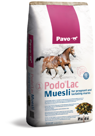 Jeśli podajesz mniej niż zalecana ilość Pavo Podo Lac Muesli, dodaj połowę porcji Pavo Podo®Care, aby zapewnić klacz i źrebięciu wszystkie potrzebne składniki odżywcze. Pavo Podo®Care jest również dobrą alternatywą dla Pavo Podo Lac Muesli, jeśli Twoja klacz ma nadwagę. Karmiąc Pavo Podo®Care, nie dostarczasz dodatkowej energii, ale nadal dostarczasz swojej klaczy i źrebięciu wszystkich składników odżywczych potrzebnych do zdrowego rozwoju.