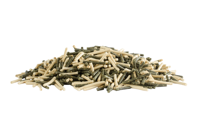 Skład: Lucerna. Śruta żytnia paszowa, fosforan magnezu, fumaran magnezu, węglan wapnia,  olej sojowy bez GMO, dekstroza