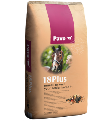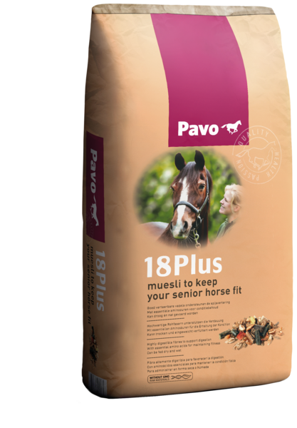 Dzięki musli Pavo 18Plus zapewniasz starzejącemu się koniowi wszystko to, co potrzebuje jego organizm, bez niepotrzebnego obciążania organizmu. To bezpyłowe musli pomoże seniorowi zachować witalność i formę w czasie kiedy Twój koń nie może już prawidłowo przeżuwać paszy objętościowej, Pavo 18Plus w połączeniu z Pavo SpeediBeet lub Pavo Fibrebeet stanowi kompletną rację żywieniową w codziennej diecie Twojego seniora.