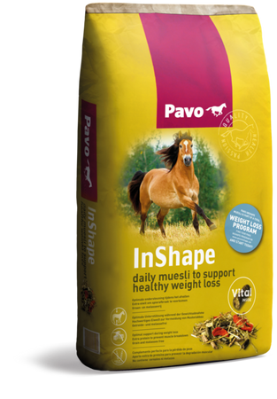 Pavo InShape to bogate w strukturę i w pełni witaminizowane musli z naturalnymi przeciwutleniaczami, opracowane specjalnie, aby optymalnie wspierać konie podczas utraty wagi. Oprócz wyjątkowego, wysokiej jakości białka (metioniny), które wspomaga spalanie tłuszczu, Pavo InShape zawiera również wyjątkowo dużą ilość białka, które pomaga mięśniom zregenerować się po pracy. Dodatkowo Pavo InShape dostarcza wszystkich niezbędnych witamin, minerałów i pierwiastków śladowych, których Twój koń potrzebuje każdego dnia, dzięki kawałkom Pavo Vital zawartym w musli. Nie zawiera zbóż i zawiera bardzo niską zawartość cukru, skrobi i energii. W walce z kilogramami ważne jest, aby koń nie zużywał dodatkowej energii, a niska zawartość cukru/skrobi wspierała konie z zaburzonym metabolizmem cukrów (często spowodowanym otyłością).